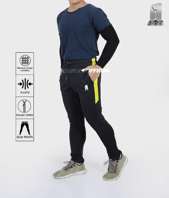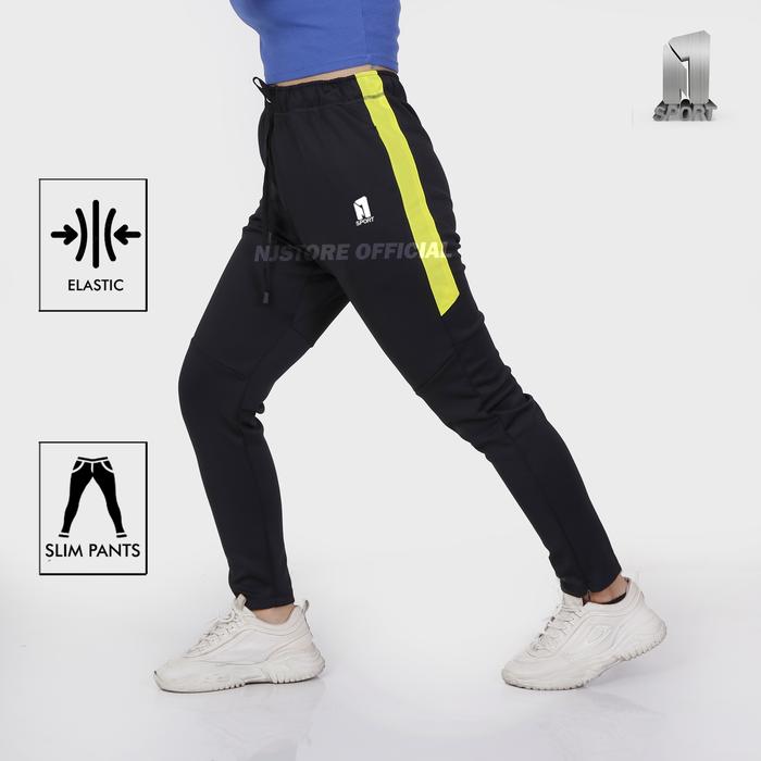 FLASH SALE CELANA PANJANG OLAHRAGA SPORT PRIA WANITA SLIM TRAINING GYM SENAM RUNNINGLIST KUNING NJS PUTI