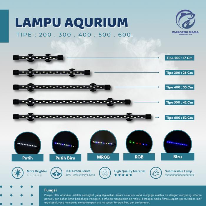 TERLARIS LAMPU AQUARIUM CELUP LED AQUASCAPE 20 30 40 50 60CM PUTIH 400 (35CM)