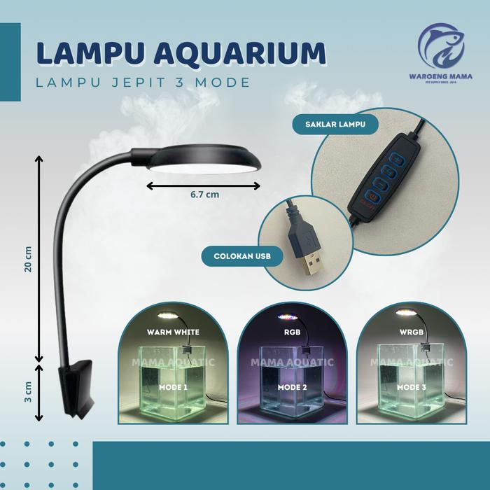 TERLARIS LAMPU AQUARIUM 3 MODE LED JEPIT AQUASCAPE MODEL BULAT 3 MODE GANTI WARNA COLOKAN USB