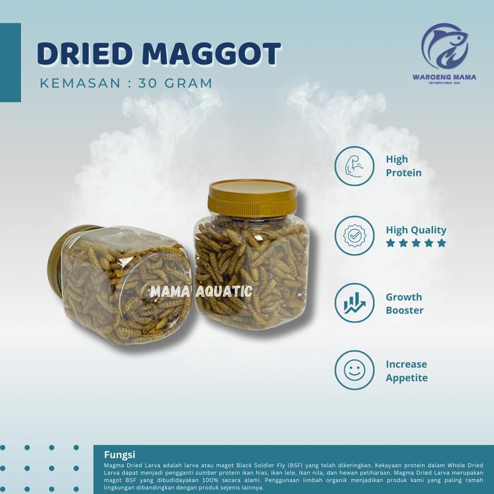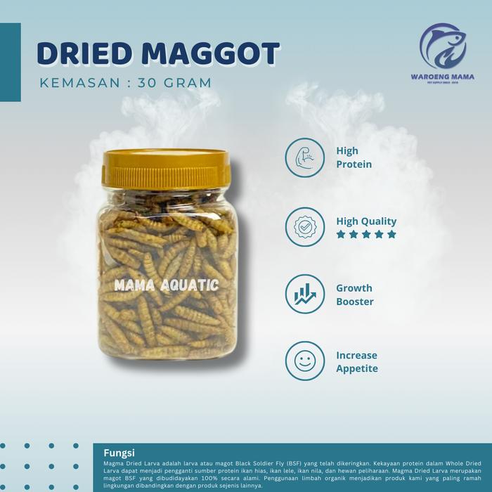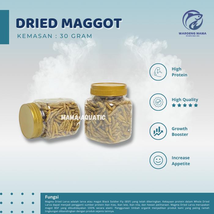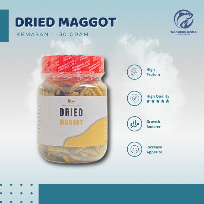 TERLARIS MAGGOT KERING BSF 30 GRAM GRADE A KAN TOPLES MAKANAN IKAN CHANNA ARWANA KOI REPTIL AYAM SUGAR GLIDER