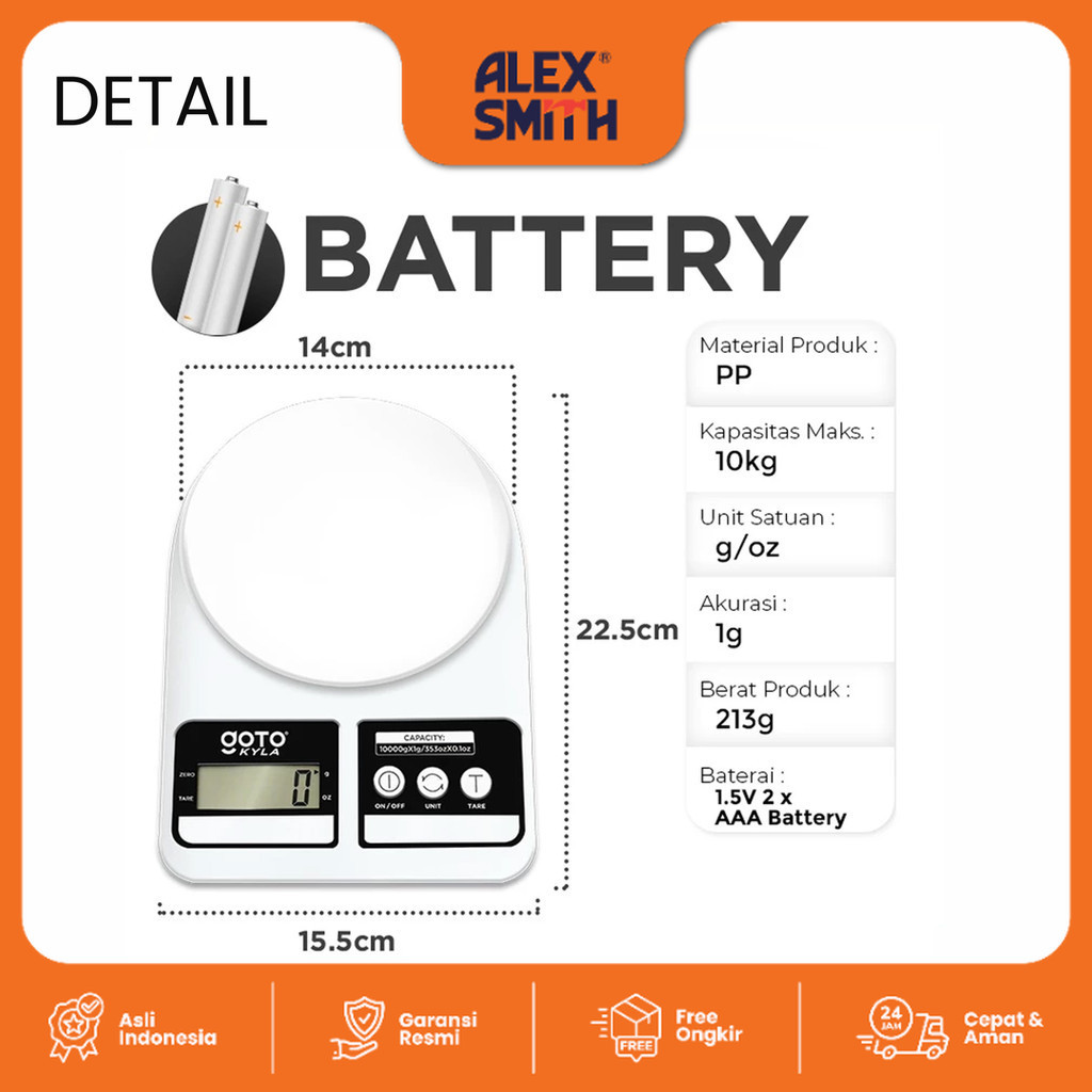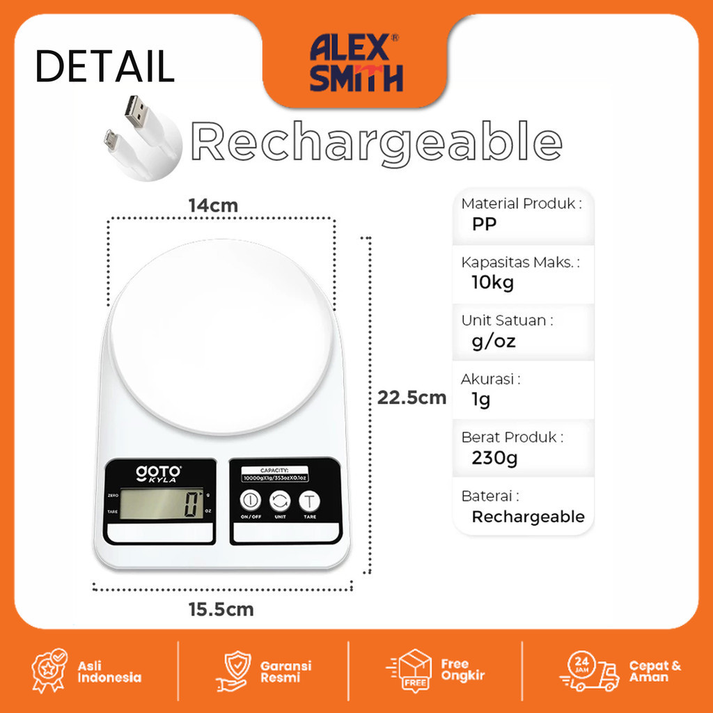 Goto Kyla Kitchen Scale Timbangan Bumbu Dapur Kue Digital Charge LED