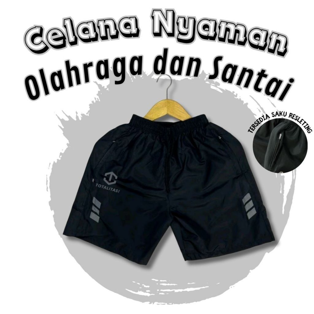 Celana Pendek Parasut Olahraga Saku Resleting Pria Wanita Bulu Tangkis Running Volly Gym Sport Kolor Futsal Jogging Bahan Berkulitas Premium