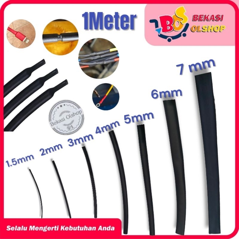 Selongsong bakar HITAM tahan panas / slongsong bakar / isolasi bakar / heatshrink 1meter