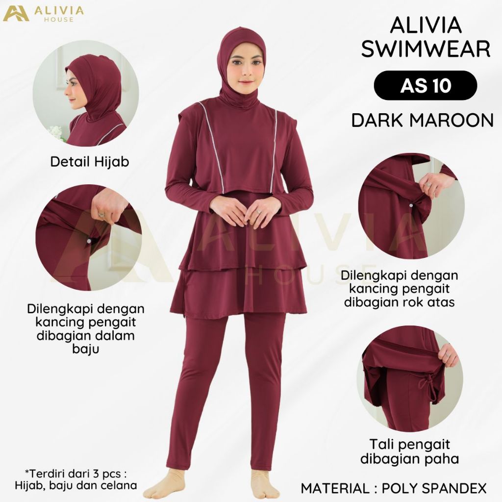 Alivia House - Alivia Swimwear AS10 - Baju renang muslimah syari dewasa wanita muslim perempuan remaja swimwear hijab