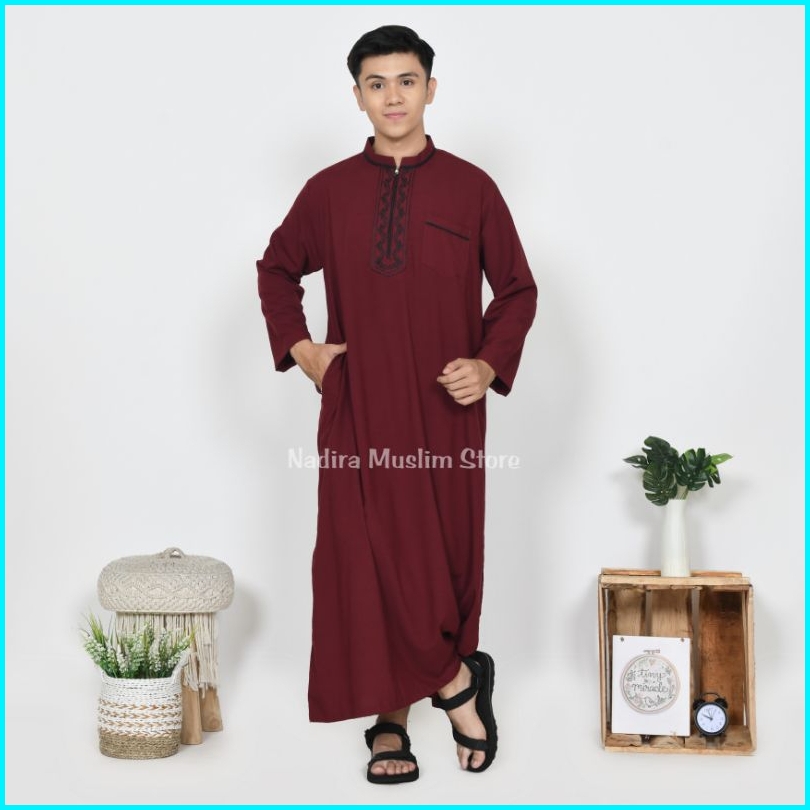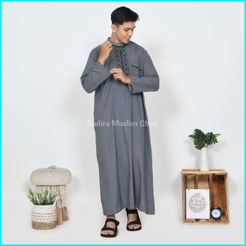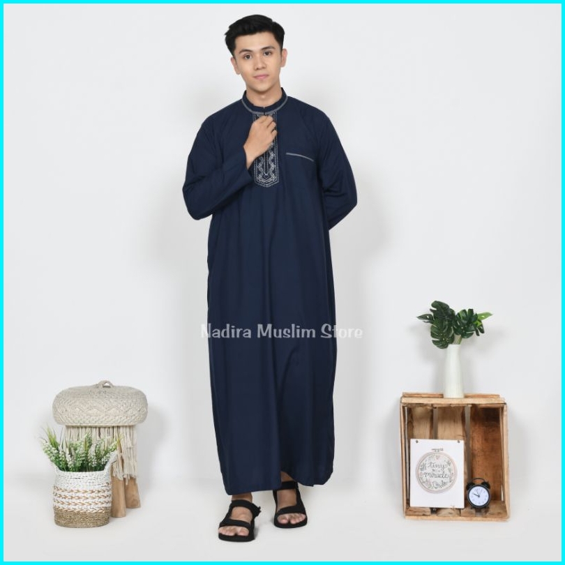 Jubah Laki - Laki Dewasa Bordir Simpel Elegant Gamis Pria Dewasa Lengan Panjang