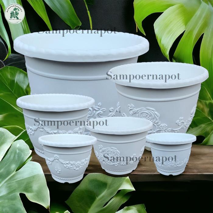 TERLARIS POT BUNGA TANAMAN SHALLOM PUTIH 30CM BAHAN TEBAL