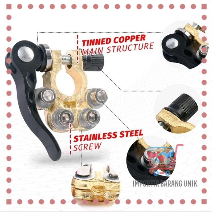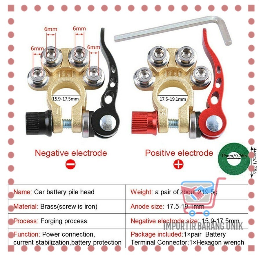 IMB-B310-Terminal Kepala Aki Mobil Bahan KUNINGAN Klem Accu Mobil Tembaga Murni Aki Terminal Tutup 2pcs/Powone 2pcs/set Terminal Kepala Aki Mobil Bahan