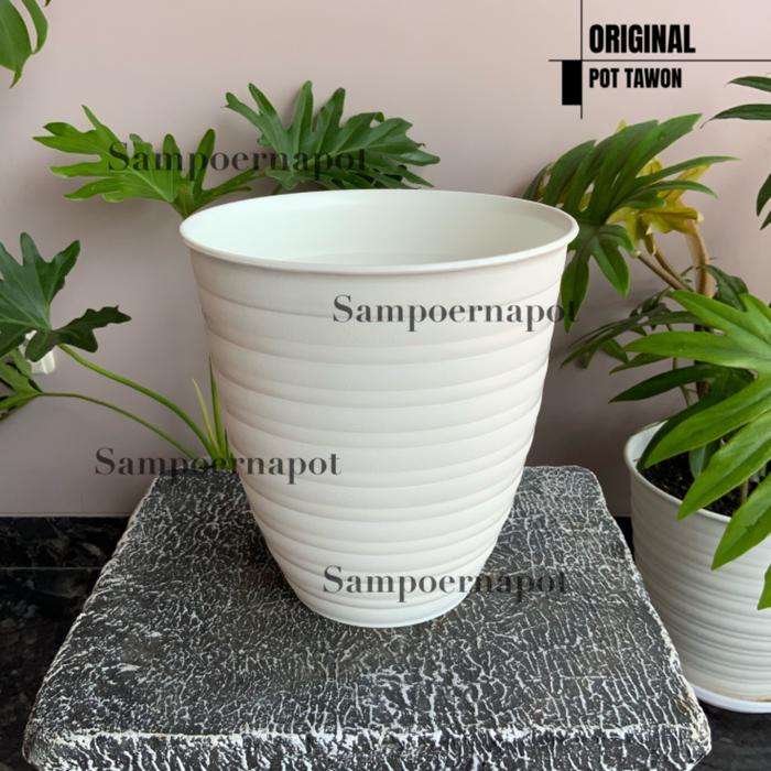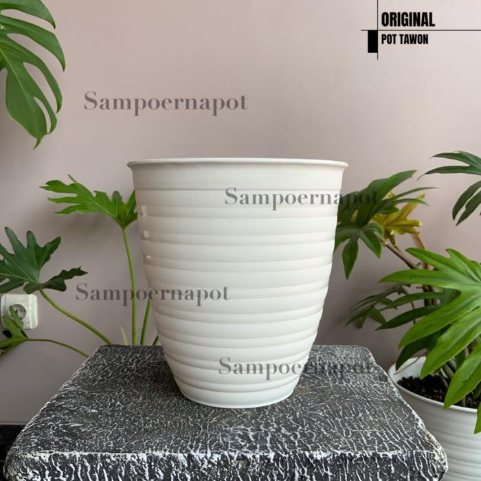 TERLARIS POT BUNGA TAWON PUTIH TINGGI 24CM (PIRUS)