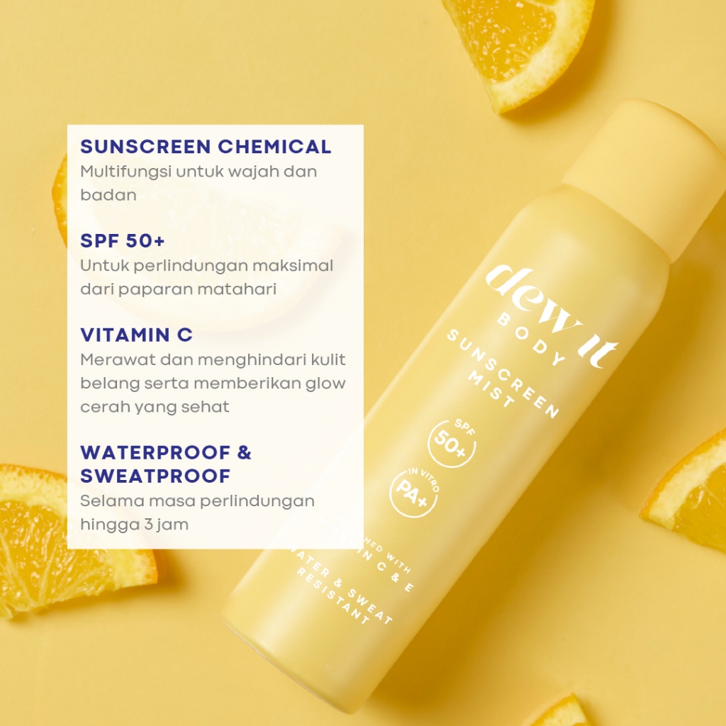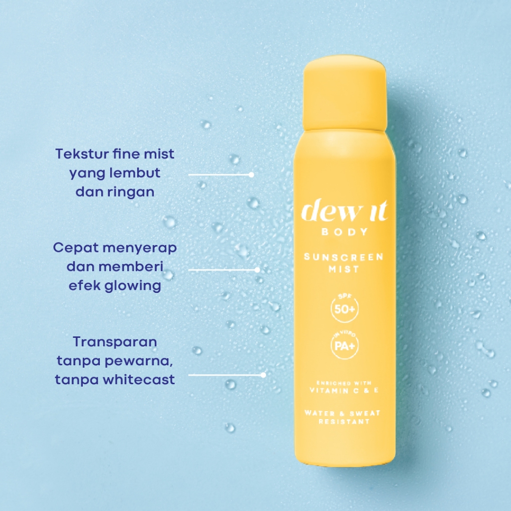 Sunscreen Spray SPF 50+ & Vit C | Dew It Sunscreen Mist | Tabir surya transparan sweatproof & waterprooff