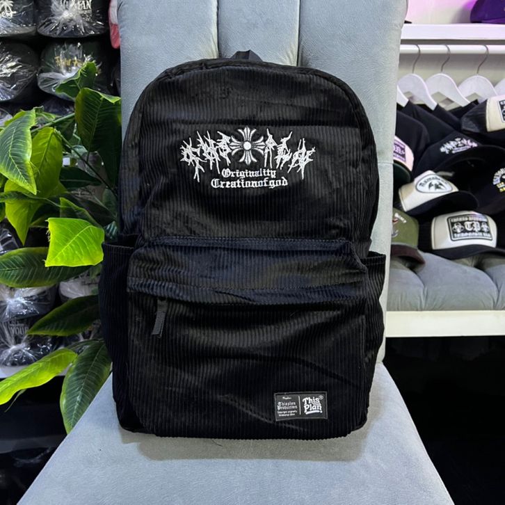 Tas Punggung Backpack Ransel Corduroy Garaga Full Black Thisplan