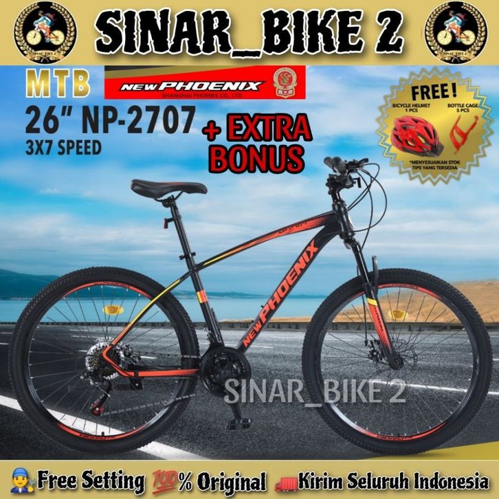( EXTRA BONUS ) SEPEDA GUNUNG MTB PHOENIX NP 2707 UKURAN 24 2627,5 INCH SEPEDA GUNUNG 3X7 SPEED TERLARIS