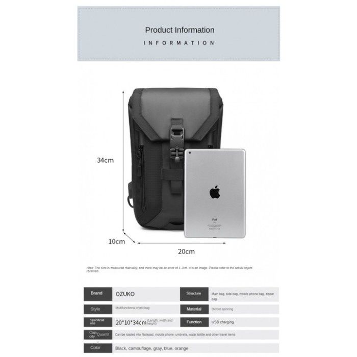 JACKMAN Tas Selempang Pria USB Casual Chest Bag 9334 Tablet 9.7 Inch