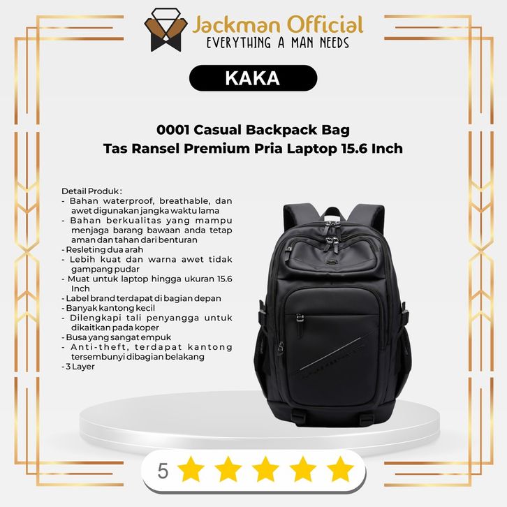 KAKA 0001 Casual Backpack Bag - Tas Ransel Premium Pria Laptop 15.6 Inch