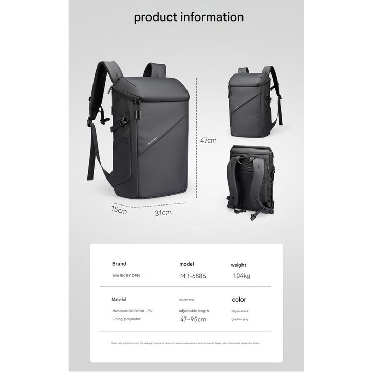 MARK RYDEN MR6886 G Al Day High-End Tas Ransel Pria Eksklusif Backpack Bag USB 17 Inch Laptop