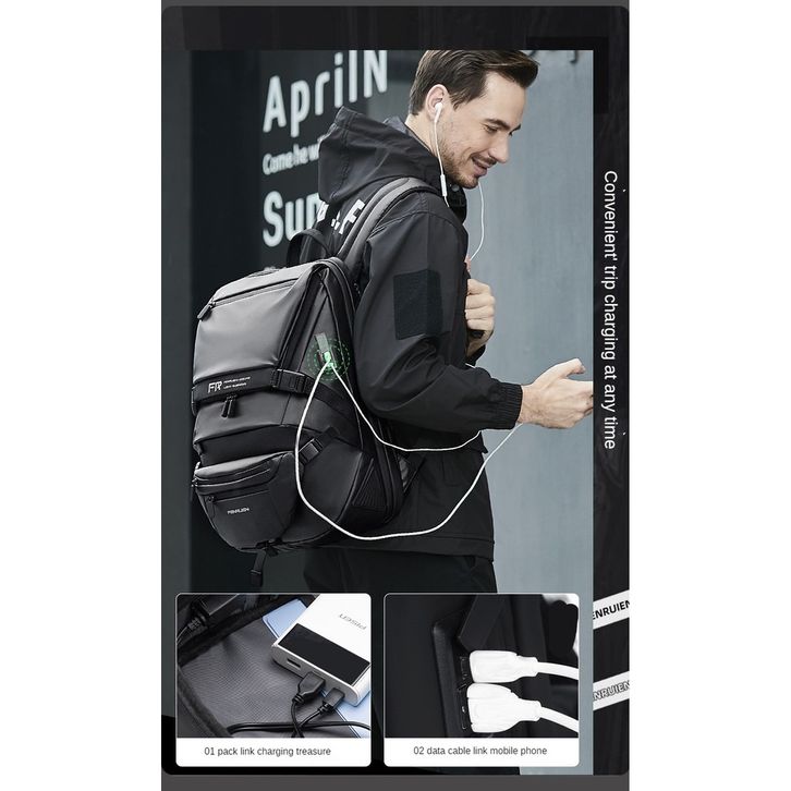 FENRUIEN 8021 Backpack Travel Tas Ransel Pria USB Laptop 17 Inch Detachable Sling Bag