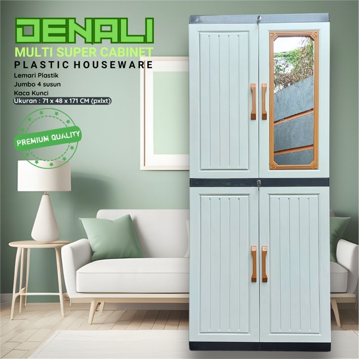 PROMO Denali Lemari Baju Plastik Jumbo Kaca Kunci Kabinet Plastik Tempat Baju Susun Almari Plastik Bagus ORIGINAL