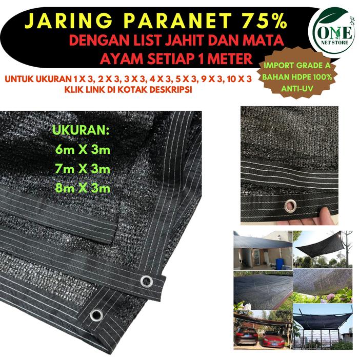 TERLARIS JARING PARANET 75 PERSEN ( ECER 6M 7M 8M 9M 10M ) | ANTI UV | SUNSHADE NET | SUDAH JAHIT LIST DAN MATA AYAM 6X3 JAHIT