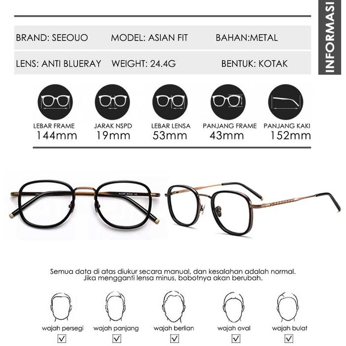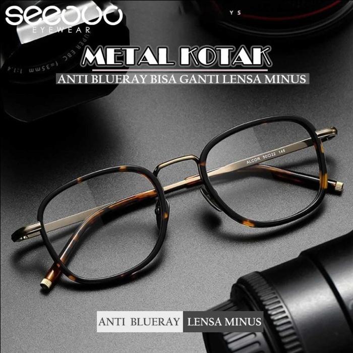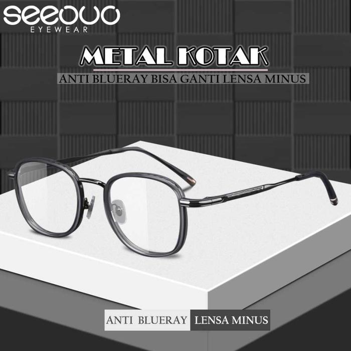 FLASH SALE SEEOUO KACAMATA ANTI RADIASI BLUERAY BISA MINUS BENTUK KOTAK TRENDY METAL RINGAN UNISEX 1014F