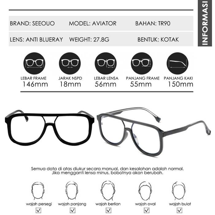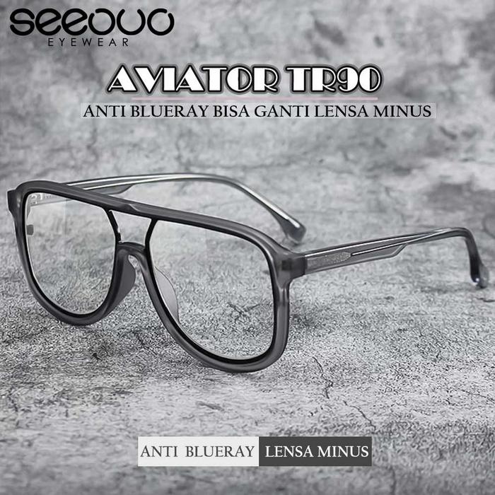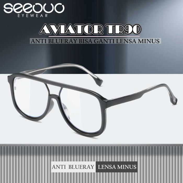 FLASH SALE SEEOUO KACAMATA ANTI RADIASI BLUERAY AVIATOR BISA MINUS TR90 RINGAN PRIA DAN WANITA 1010BLACK