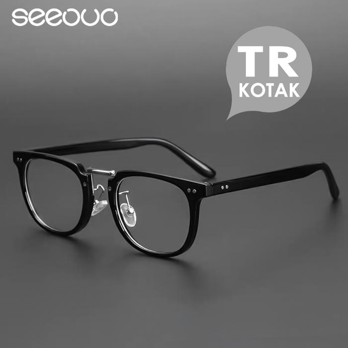 FLASH SALE SEEOUO KACAMATA ANTIRADIASI BLUERAY MODEL KOTAK OVAL TR90+METAL 2988BLACK GLOSSY BLUERAY NOR