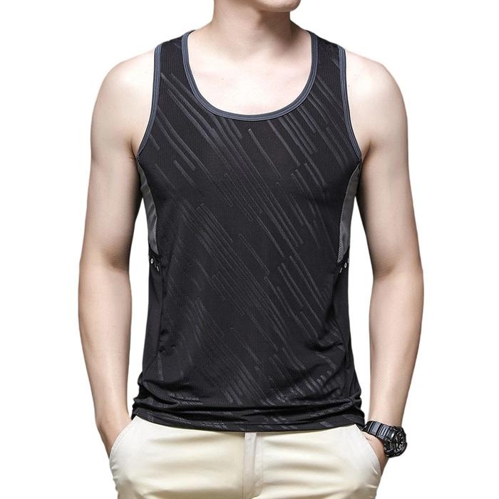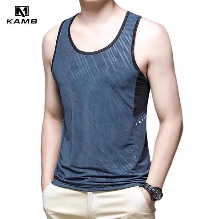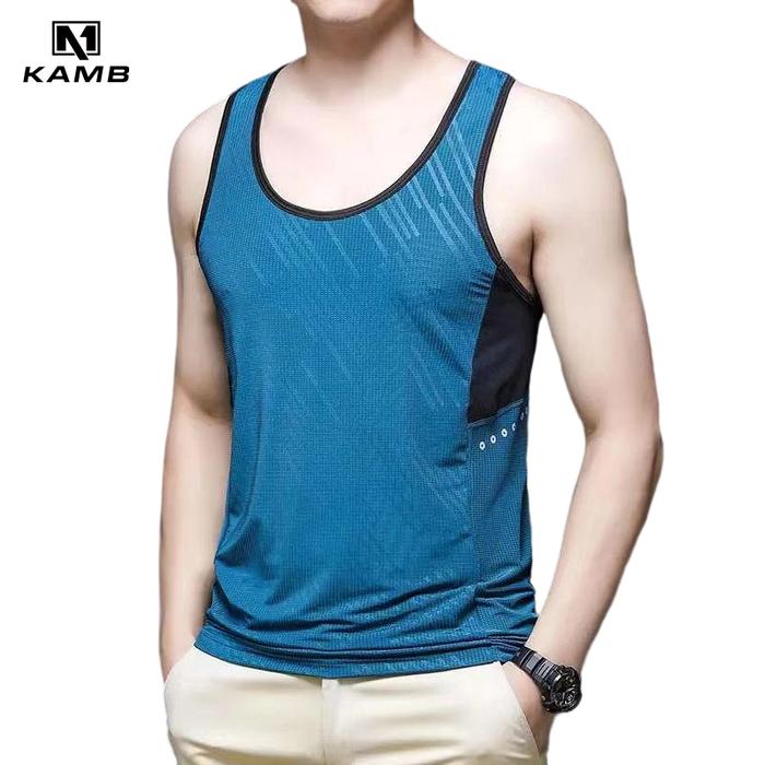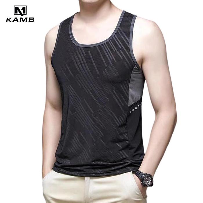 FLASH SALE KAMB KAOS SINGLET PRIA DRY FIT GYM RUNNING TANKTOP OLAHRAGA PAKAIAN OUTDOOR SPORTHITAM L