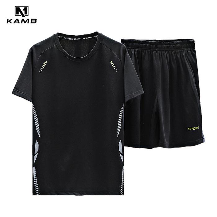 FLASH SALE KAMB STELAN OLAHRAGA PRIA KAOS PRIA 1 SETSPORTS WEAR QUICK DRYING PAKAIANHITAM M