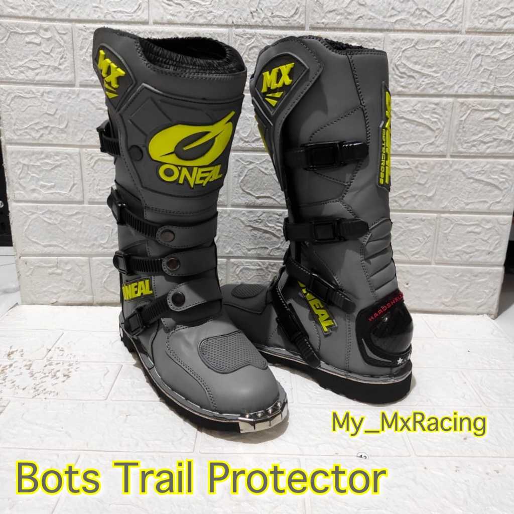 sepatu cross trail sepatu trail ON GREY FLOU adventure bots safety terlaris sepatu motorcross with protector ujung besi