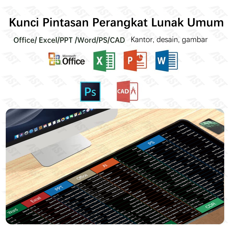 [Mall] Mousepad Shortcut Office/Excel/Word/AI/PS/PR/CDR – Cetak Tombol Shortcut 80x30cm | CNAST