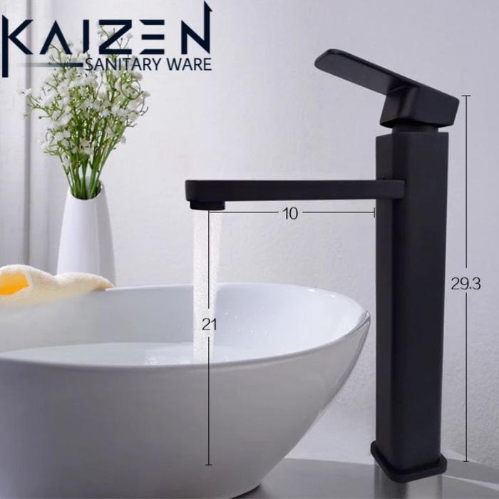 FLASH SALE KRAN WASTAFEL PANAS DINGIN HITAM LAVATORY BLACK KOTAK TINGGI 30CM