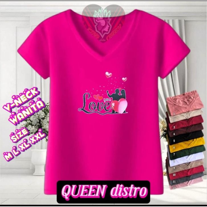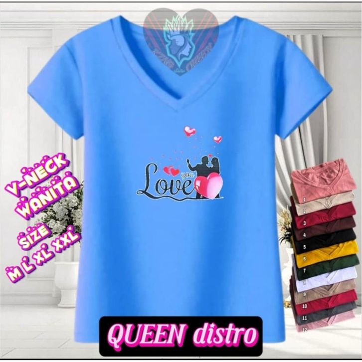 KAOS V NECK WANITA ABG MOTIF LOVENTINE BAHAN LEMBUT DAN ADEM