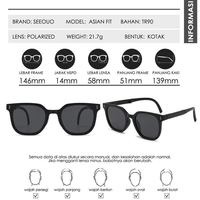 FLASH SALE SEEOUO SUNGLASSES KACAMATA HITAM POLARIZED MODEL KOTAK LIPAT STYLISH FRAME TR90 RINGAN LENS POLA