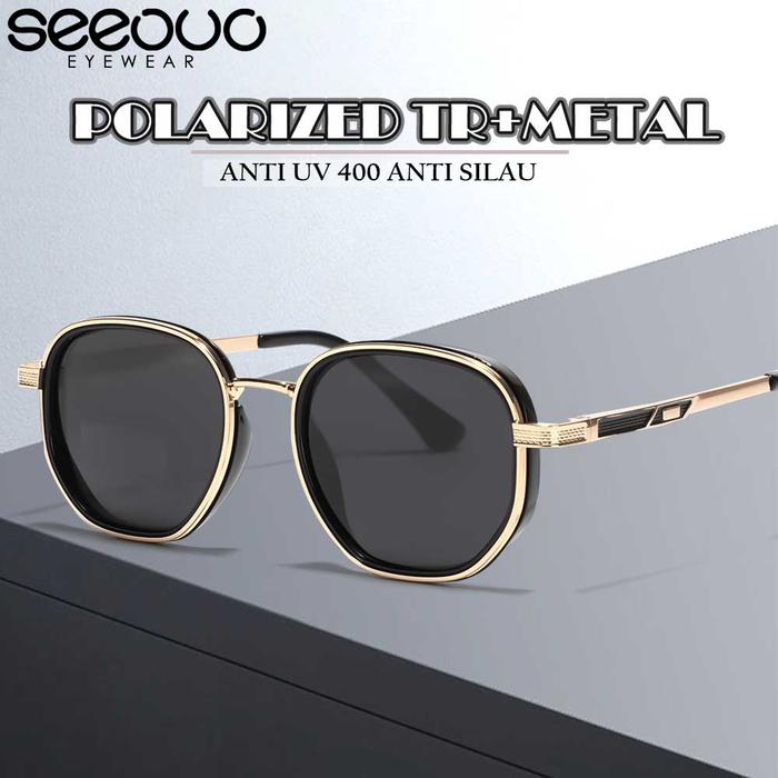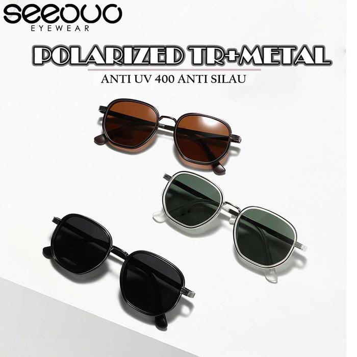 FLASH SALE SEEOUO KACAMATA SUNGLASSES POLARIZED LENSA HITAM ANTI SILAU BENTUK AVIATOR STYLE PRIA WANITA 601