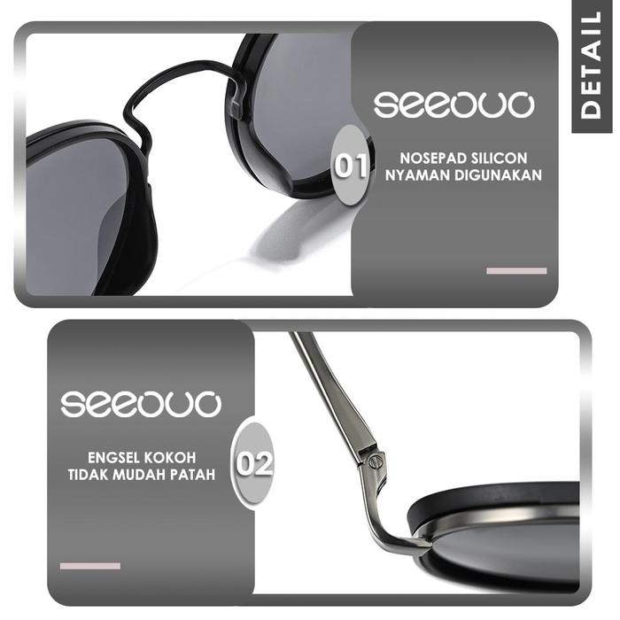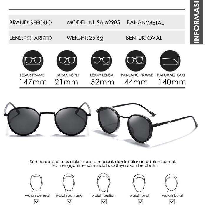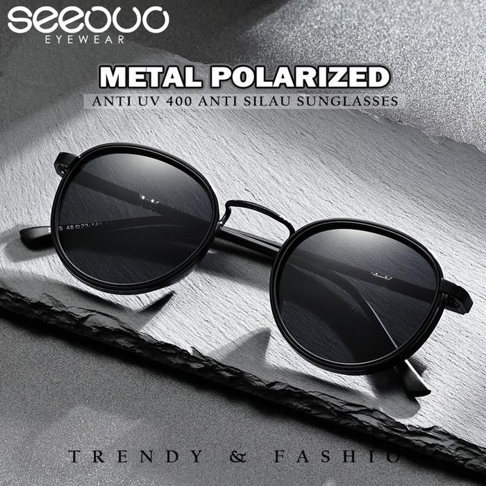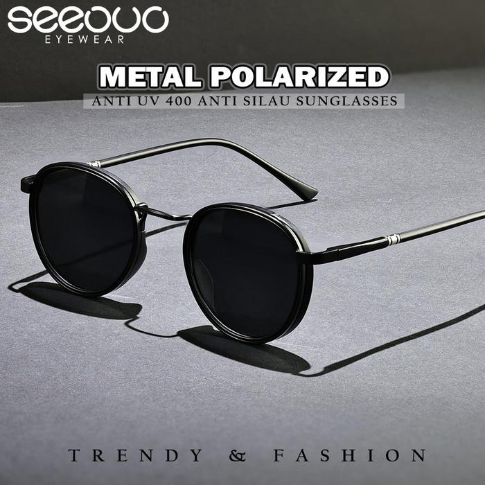 FLASH SALE SEEOUO SUNGLASSES KACAMATA LENSA HITAM POLARIZED ANTI SILAU UV 400 MODEL OVAL RETRO STYLE UNISEX