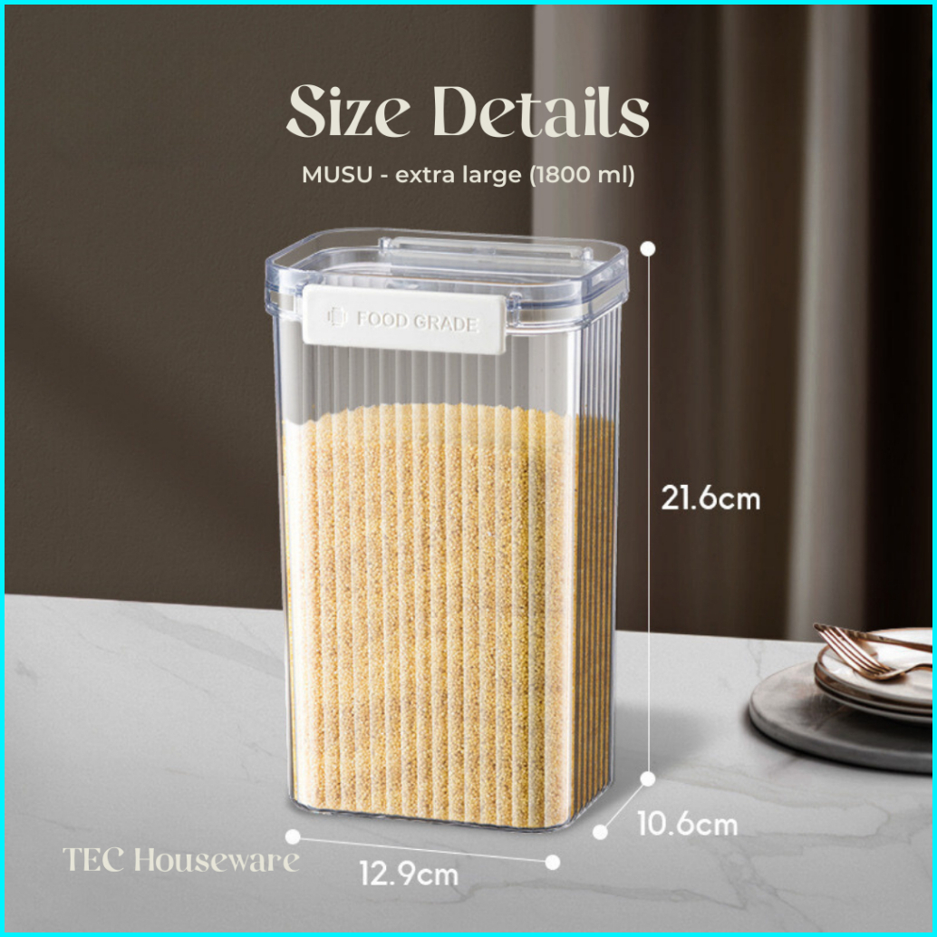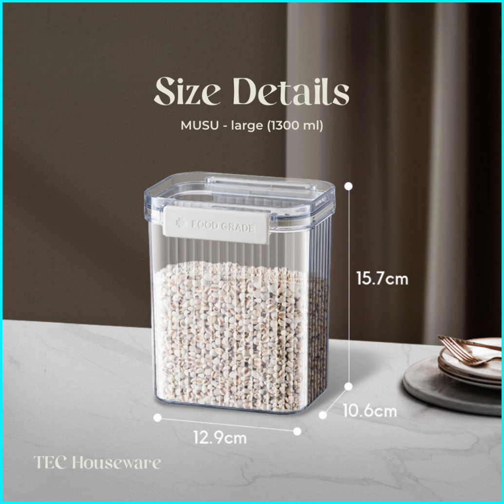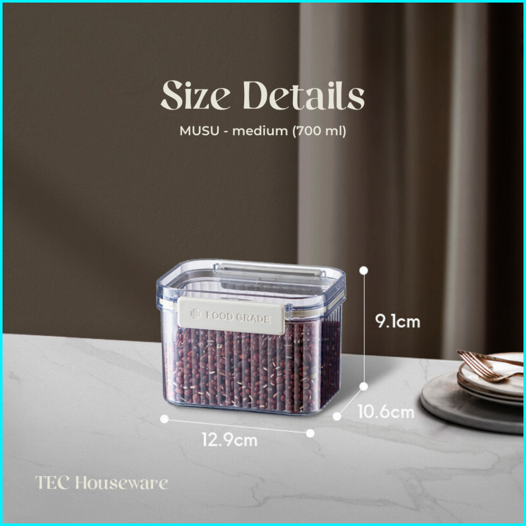 Produk Rumah Tangga Tec Musu Toples Makanan Kedap Udara Kotak Penyimpanan Serbaguna Putih Toples Bening Kontainer Kulkas
