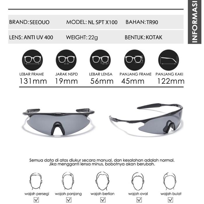 FLASH SALE SEEOUO SUNGLASSES KACAMATA OLAHRAGA SUN PROTECTION UV 400 BENTUK KOTAK HALF TR90FASHION SPORT
