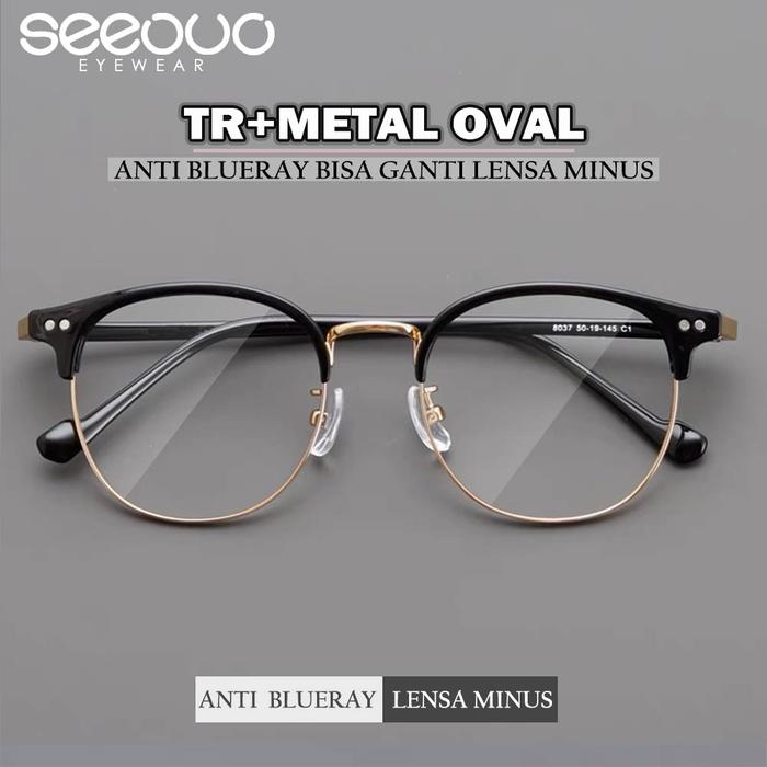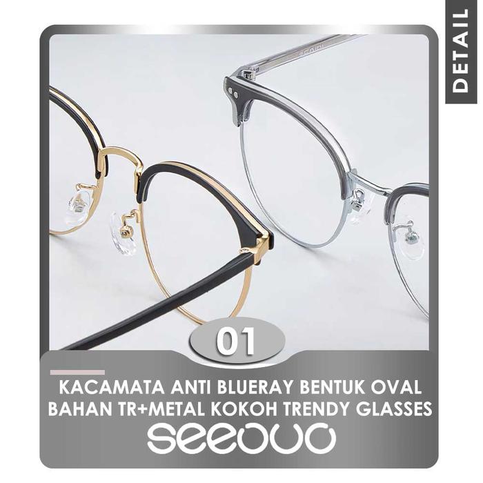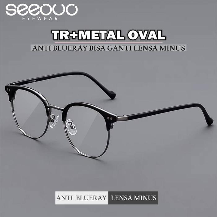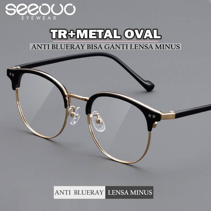 FLASH SALE SEEOUO KACAMATA ANTIRADIASI BLUERAY MODEL OVAL STYLISH BROWLINE FASHIONABLE METAL+TR90 RINGAN UN