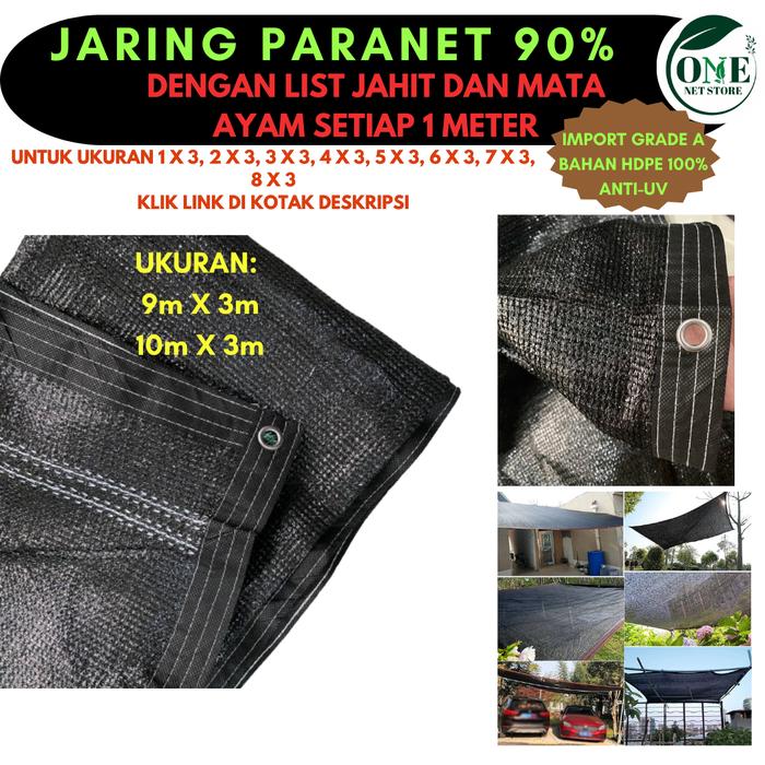 TERLARIS JARING PARANET 90 PERSEN ( ECER 11M 12M 13M 14M 15M ) ANTI UV | SHADING NET | DENGAN LIST DAN MATA AYAM 11X3 JAHIT