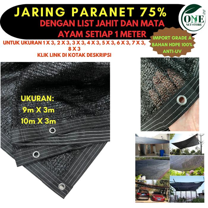 TERLARIS JARING PARANET 75 PERSEN ( ECER 11M 12M 13M 14M 15M ) | ANTI UV | SUNSHADE NET | SUDAH JAHIT LIST DAN MATA AYAM 11X3 JAHIT