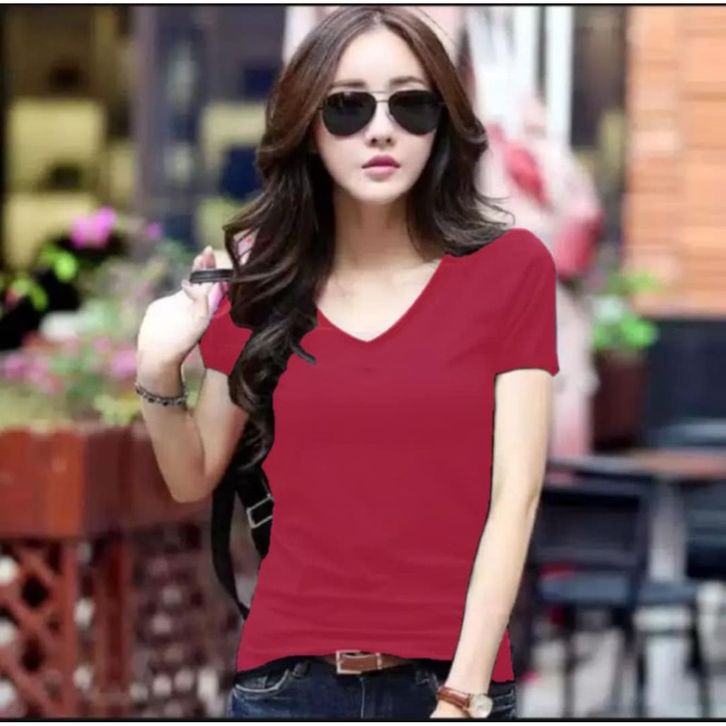TSHIRT V-NECK WANITA 45.999 DAPAT 3-6 PCS UKURAN M L XL XXL