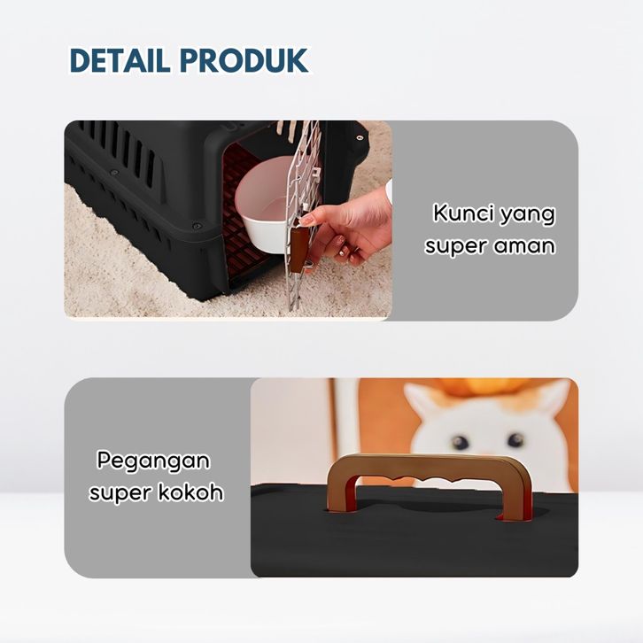 KANDANG PET CARGO HITAM FREE ALAS RUMAH ANJING KUCING KELINCI ANABUL TAS TRAVEL HEWAN PET CARRIER DENGAN PINTU BESI