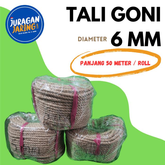 TERLARIS TALI TAMBANG GONI DIAMETER 6 MM PANJANG 50 METER UNTUK GARUKAN KUCING DEKORASI HIASAN