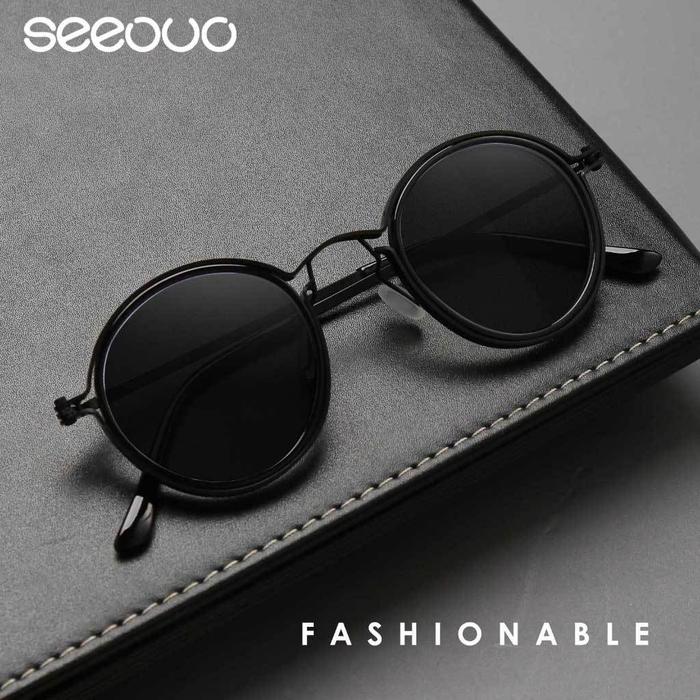 FLASH SALE SEEOUO KACAMATA HITAM SUNGLASSES POLARIZED MODEL BULAT RETRO STYLISH ANTIUV ANTI SILAU TR90+META
