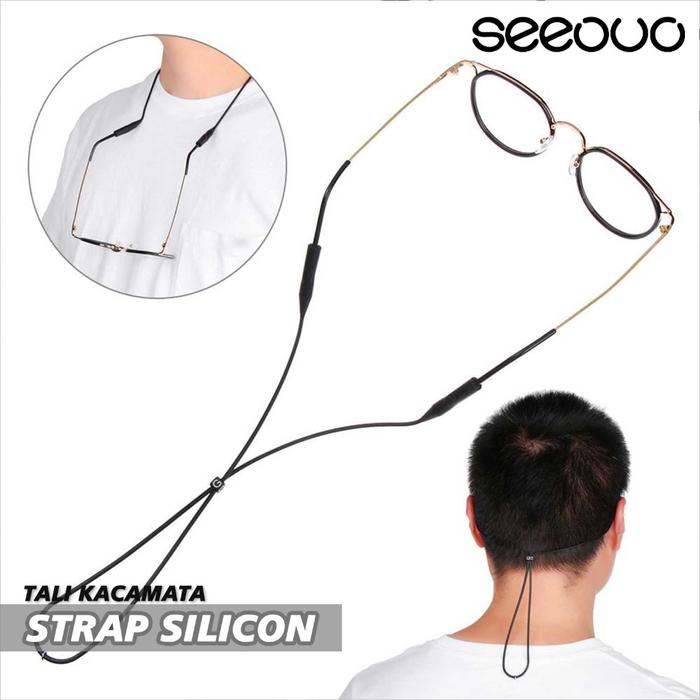 FLASH SALE SEEOUO TALI PENGAIT PENAHAN STRAP KACAMATA BAHAN SILICONE LENTUR UNTUK OLAHRAGA DEWASAHITAM