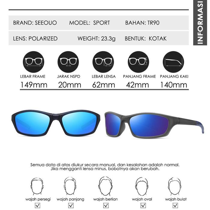 FLASH SALE SEEOUO KACAMATA SPORT SUNGLASSES POLARIZED FOLDABLE TRENDY ANTI UV 400 ANTI SILAU KOTAK TR90 RIN