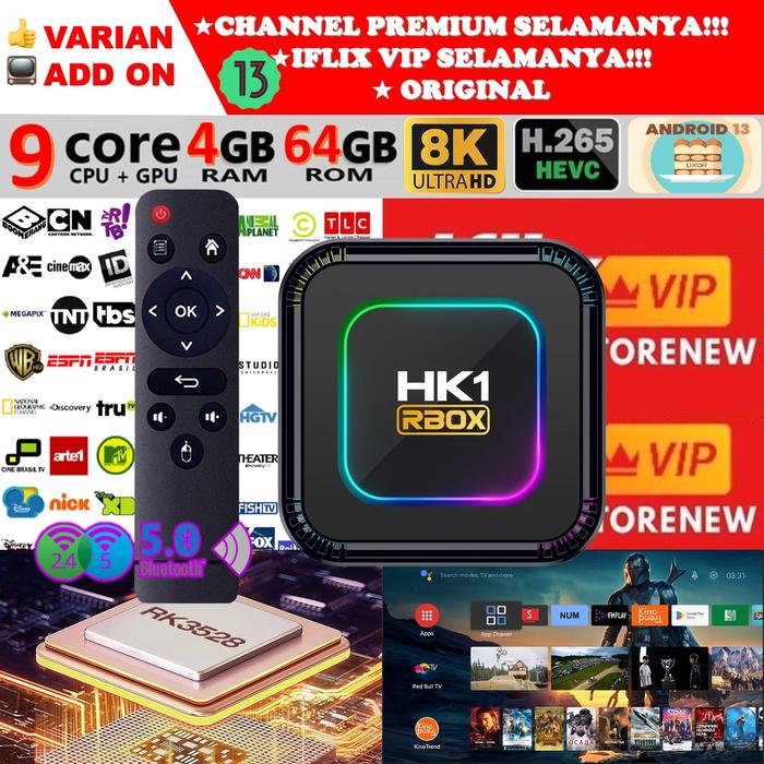 FLASH SALE STB ANDROID 13 SMART TV BOX ANDROID HK1 RBOX K8 RAM 4GB ROM 64GB 464 UNLOCK FULL CHANNEL TV IFL