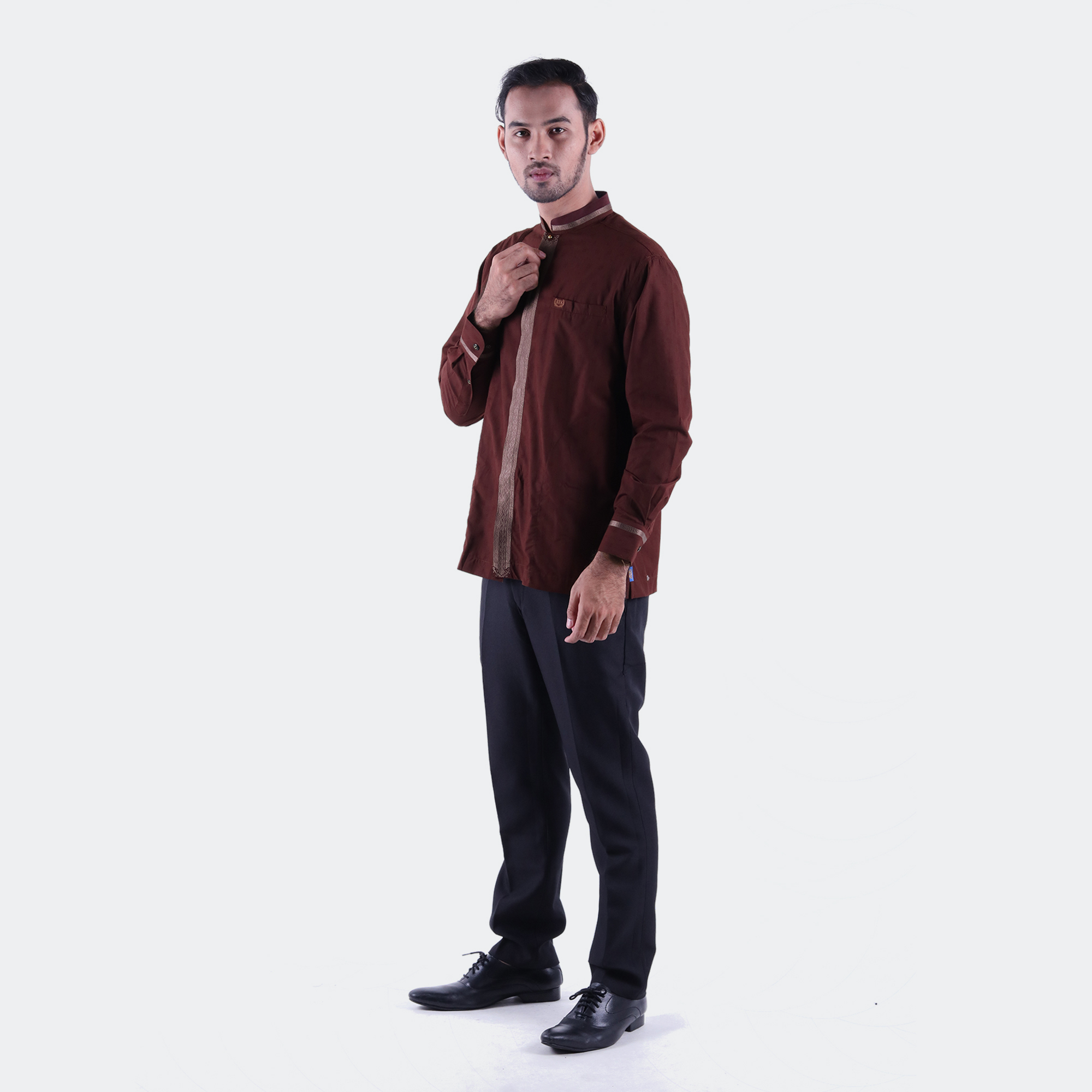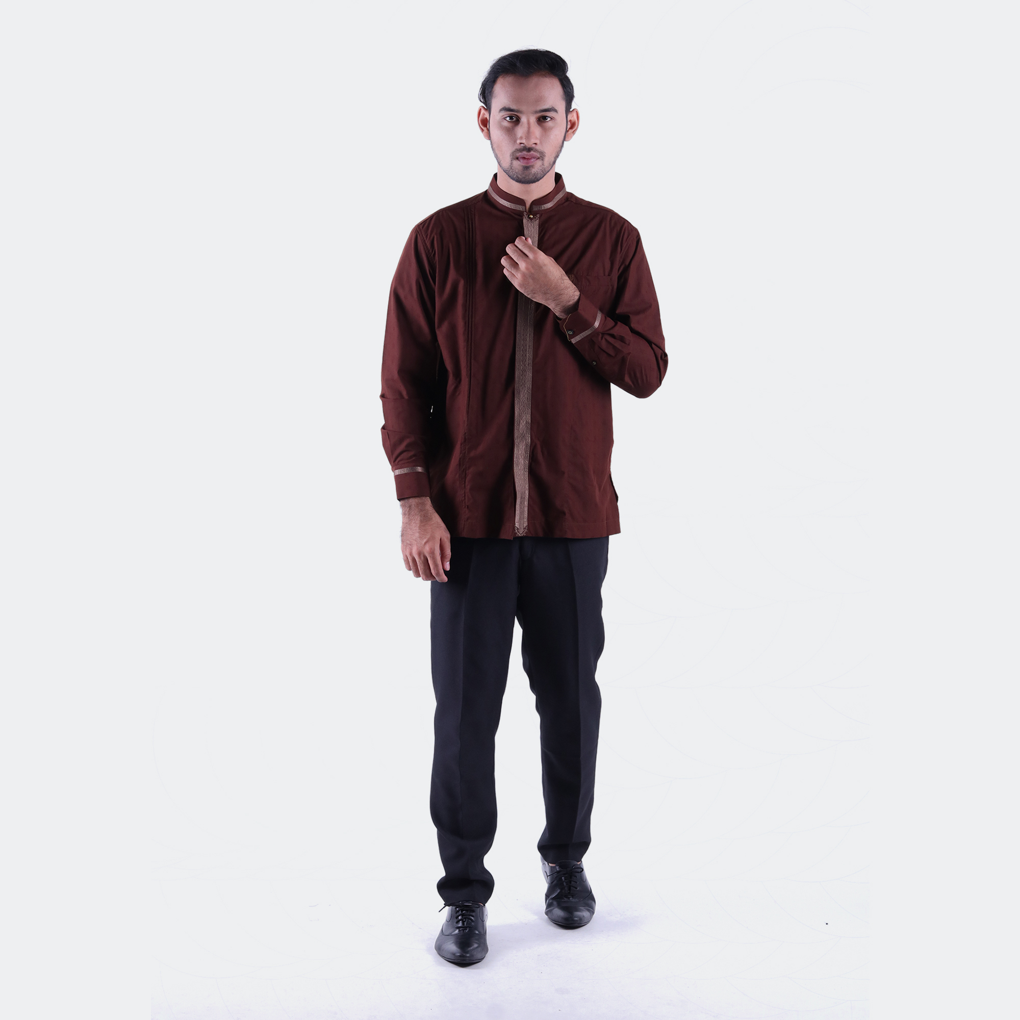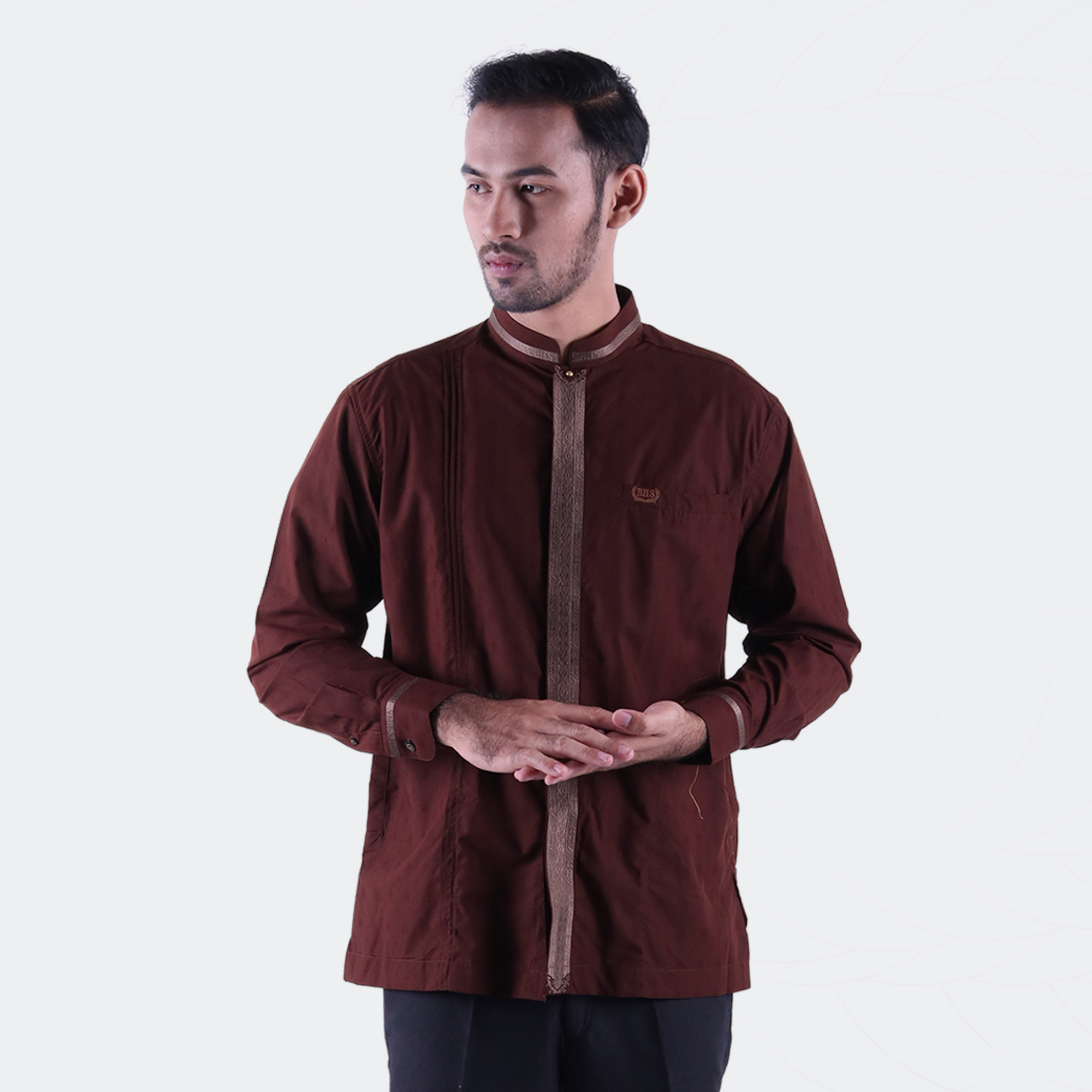 Baju Koko BHS Classic Motif Single Coklat Tua