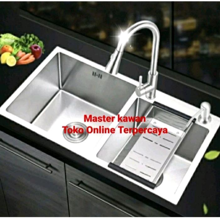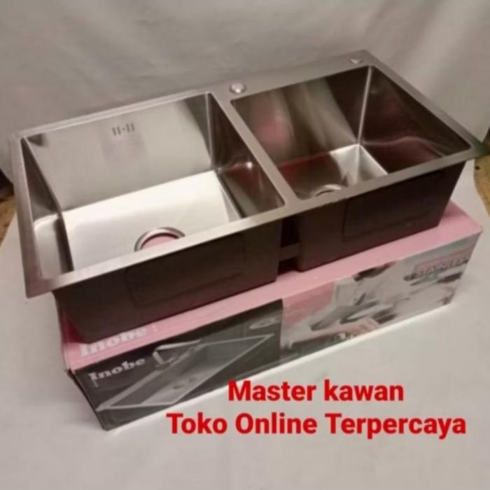 FLASH SALE PAKET LENGKAP KITCHEN SINK STAINLESS INOBE 8245 + KRAN FLEKSIBEL STAINLESS SUS 304 BAK CUCI PIR