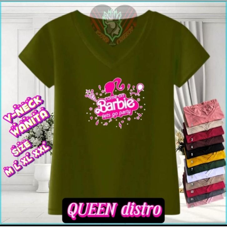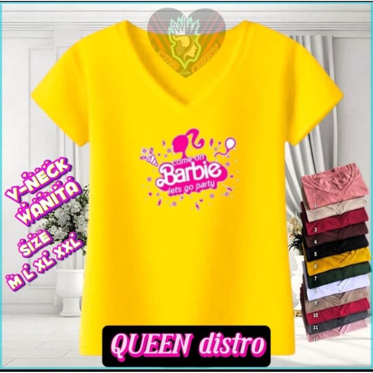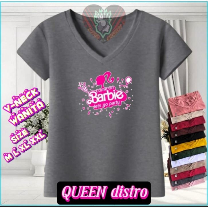 KAOS V NECK WANITA ABG MOTIF BARBIE GO PARTY BAHAN LEMBUT DAN ADEM