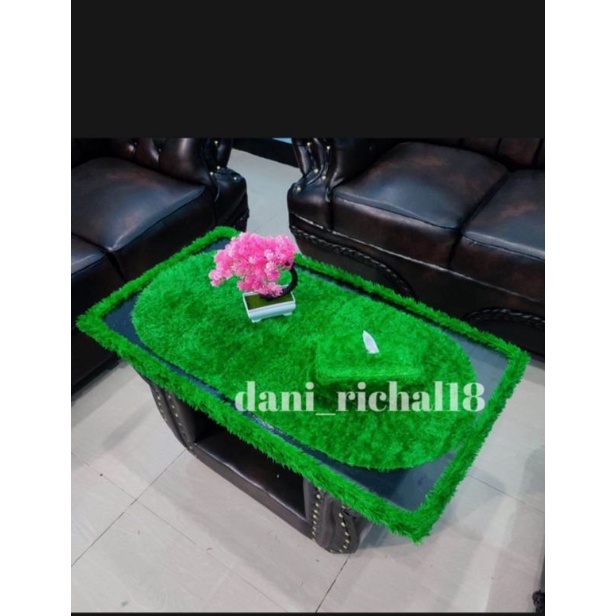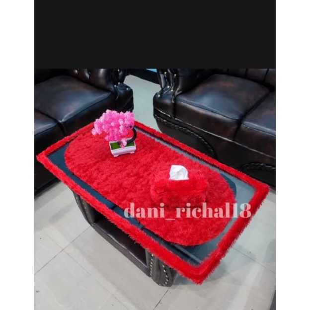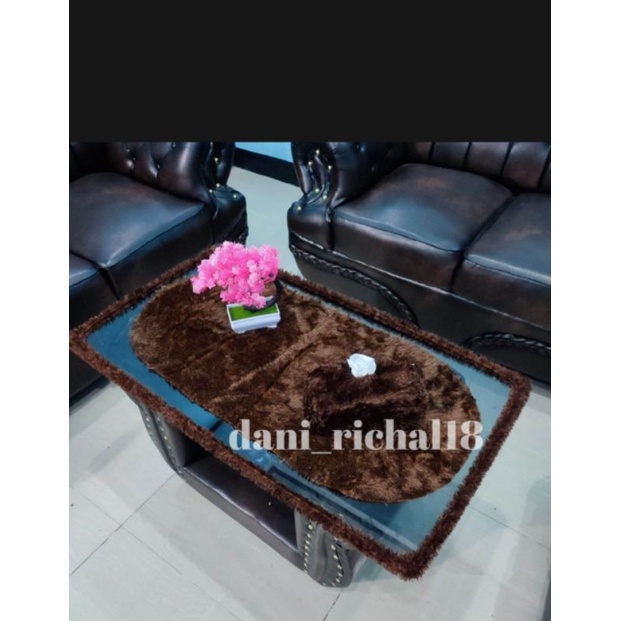 Taplak Meja Kaca R Tamu 1 set bulu rasfur/Taplak Oval +Bando+tisu/Taplak meja r tamu