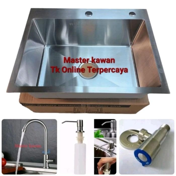FLASH SALE PROMO PAKET LENGKAP KITCHEN SINK STAINLESS 6045 SUS 304 BAK CUCI PIRING 6045 KRANBOWL SET